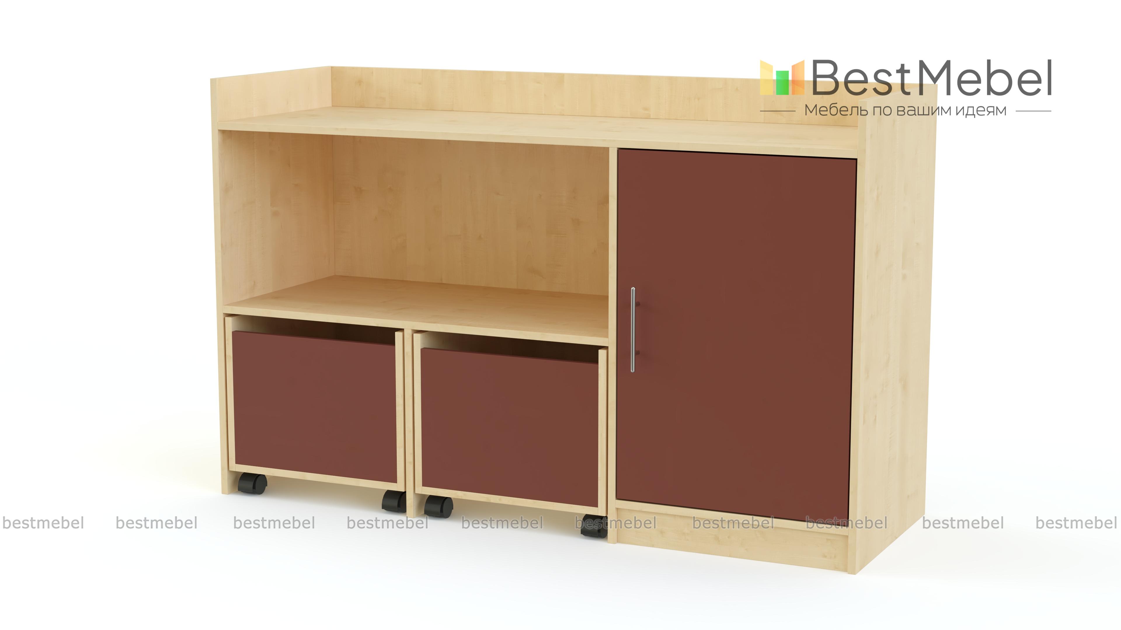 Ящик для игрушек на колесах № 3 BMS позволит упорядочить хранение игрушек, книг, принадлежностей для творчества и поддерживать в детской порядок. Многофункциональная модель оборудована двумя выдвижными ящиками на колесиках, распашным отделением, просторной нишей и широкой столешницей с защитным бортиком, который убережет мелкие предметы от падения. Ящик выполнен в нейтральных древесных тонах, а оптимальный оттенок для цветных вставок на фасадах вы сможете подобрать самостоятельно. Купить ящик для игрушек на колесах № 3 BMS вы сможете по лучшей цене в нашем интернет-магазине.