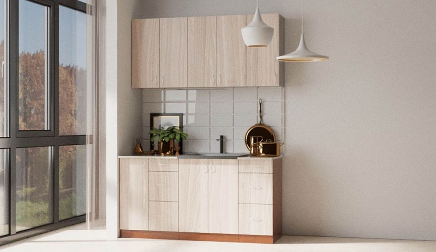 Кухня Алиса-4 BMS будет востребована в малогабаритных квартирах и студиях благодаря миниатюрным размерам. Экономичный гарнитур включает в себя самое необходимое для хранения посуды, продуктов, столовых приборов и установки мойки – три напольных и три навесных модуля с глухими распашными отделениями и выдвижными ящиками. Гладкие фасады в практичных древесных оттенках просты в уходе и легко вписываются в современный интерьер. Купить кухню Алиса-4 BMS недорого вы сможете в нашем интернет-магазине.