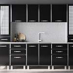 Кухня Черный глянец BMS – эффектная монохромная модель для современных интерьеров. Поклонники минимализма по достоинству оценят лаконичный дизайн глянцевых, чуть объемных фасадов с хромированной фурнитурой. Модель средних габаритов оборудована тумбами с распашными отделениями и выдвижными ящиками, навесными шкафами и эффектными, симметрично расположенными узкими витринами. Купить кухню Черный глянец BMS для эстетичного и комфортного современного интерьера приглашаем по доступной цене в наш интернет-магазин.