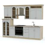 Кухня Ника Кантри BMS выполнена в популярном стиле кантри и поможет создать светлый, изящный и по-домашнему уютный интерьер. Глянцевые фасады жемчужного оттенка декорированы характерной фрезеровкой и ручками под бронзу с керамическими накладками. Влагостойкие и простые в уходе, поверхности надолго сохранят эстетичный вид. Помимо стандартных распашных отделений и выдвижных ящиков, в комплект входят оригинальные открытые полки для мелочей и витрины с тонированным стеклом. Купить кухню Ника Кантри BMS вы сможете по отличной цене в нашем интернет-магазине.