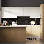 Кухня Сара ТТ2 BMS – это современная П-образная композиция, совмещенная с барной стойкой, которая поможет разделить помещение на функциональные зоны и оптимальна для просторных кухонь или студий. В комплект входят напольные и навесные элементы с распашными отделениями и выдвижными ящиками и пеналы, позволяющие органично вписать бытовую технику. Гладкие сплошные фасады в сочетании древесных тонов и белого дополнены ручками-рейлингами. Купить кухню Сара ТТ2 BMS, подобрав оптимальные параметры, вы сможете в нашем интернет-магазине.