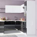 Кухня Софокл BMS гармонично впишется в интерьер просторного помещения – квартиры или студии. Минималистичный дизайн гарнитура подчеркивает контрастная черно-белая гамма глянцевых фасадов. П-образная конструкция удобна для зонирования и выгодно использует особенности планировки, а визуальную легкость кухне придают горизонтальные навесные шкафчики. Эффектное дополнение – барная стойка с двухуровневой столешницей на хромированных опорах. Купить кухню Софокл BMS для современного интерьера приглашаем в наш интернет-магазин.
