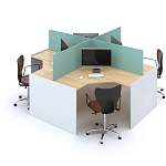 Бенч-система Лайн BMS станет частью креативного, современного офисного пространства. Оригинальная композиция объединила четыре угловых компьютерных стола с эргономичной формы столешницами, оборудованных широкими устойчивыми опорами-боковинами. Для зонирования рабочих мест использованы глухие перегородки, выполненные в контрастном цвете. Купить бенч-систему Лайн BMS, комфортную для командной и индивидуальной работы, приглашаем в наш интернет-магазин.