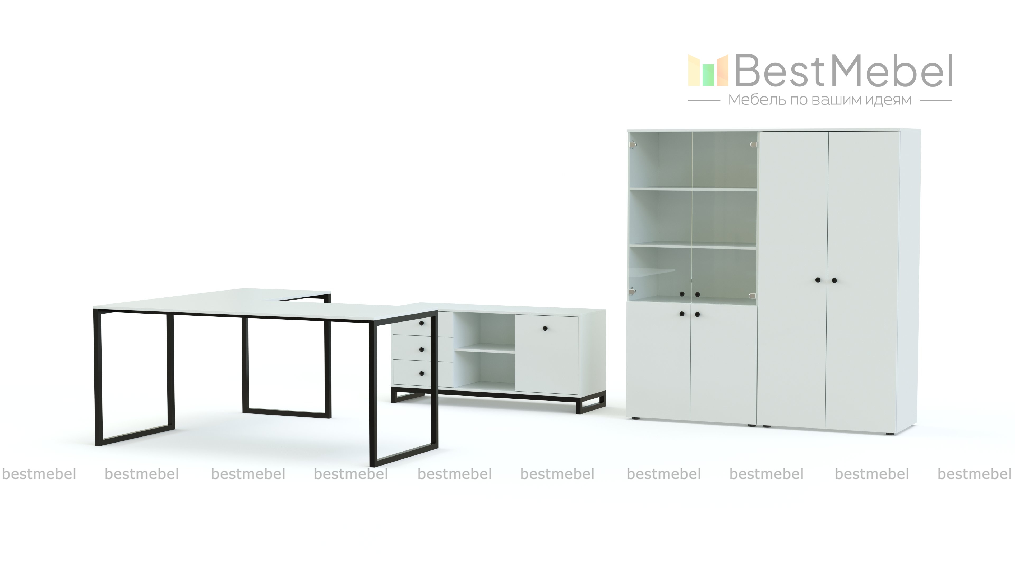 Кабинет руководителя Фрей 10 BMS воплощает современные идеи организации пространства. Эргономичные формы и светлая палитра делают эту модульную композицию прекрасной базой для помещений разного размера и планировки. Кабинет укомплектован письменным угловым столом и греденцией на металлокаркасе, книжным шкафом с глухими и стеклянными створками. Купить кабинет руководителя Фрей 10 BMS с учетом оптимальных размеров вы сможете на сайте нашего интернет-магазина.
