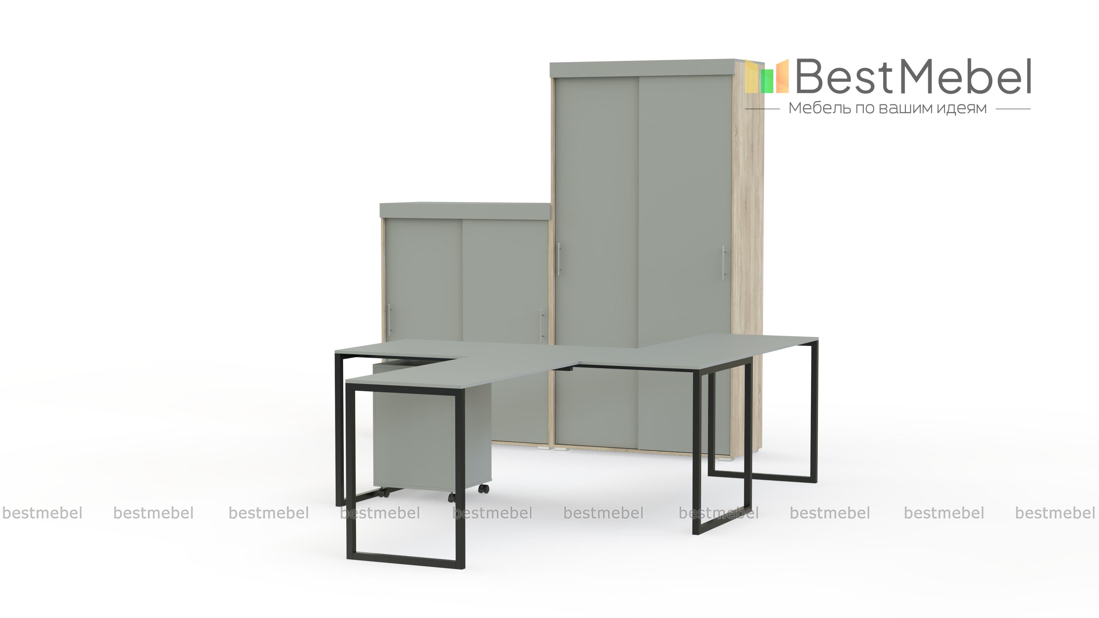 Офисный комплект мебели для тех, кто любит легкость и практичность во всем. Здесь нет громоздких столов, объемных широких стеллажей и тумб. Максимум комфорта и функциональности при минимальной занятости площади. Легкость и воздушность подчеркивает широкий выбор светлых цветов. Хотя для любителей темных оттенков есть насыщенный и притягательный черный.