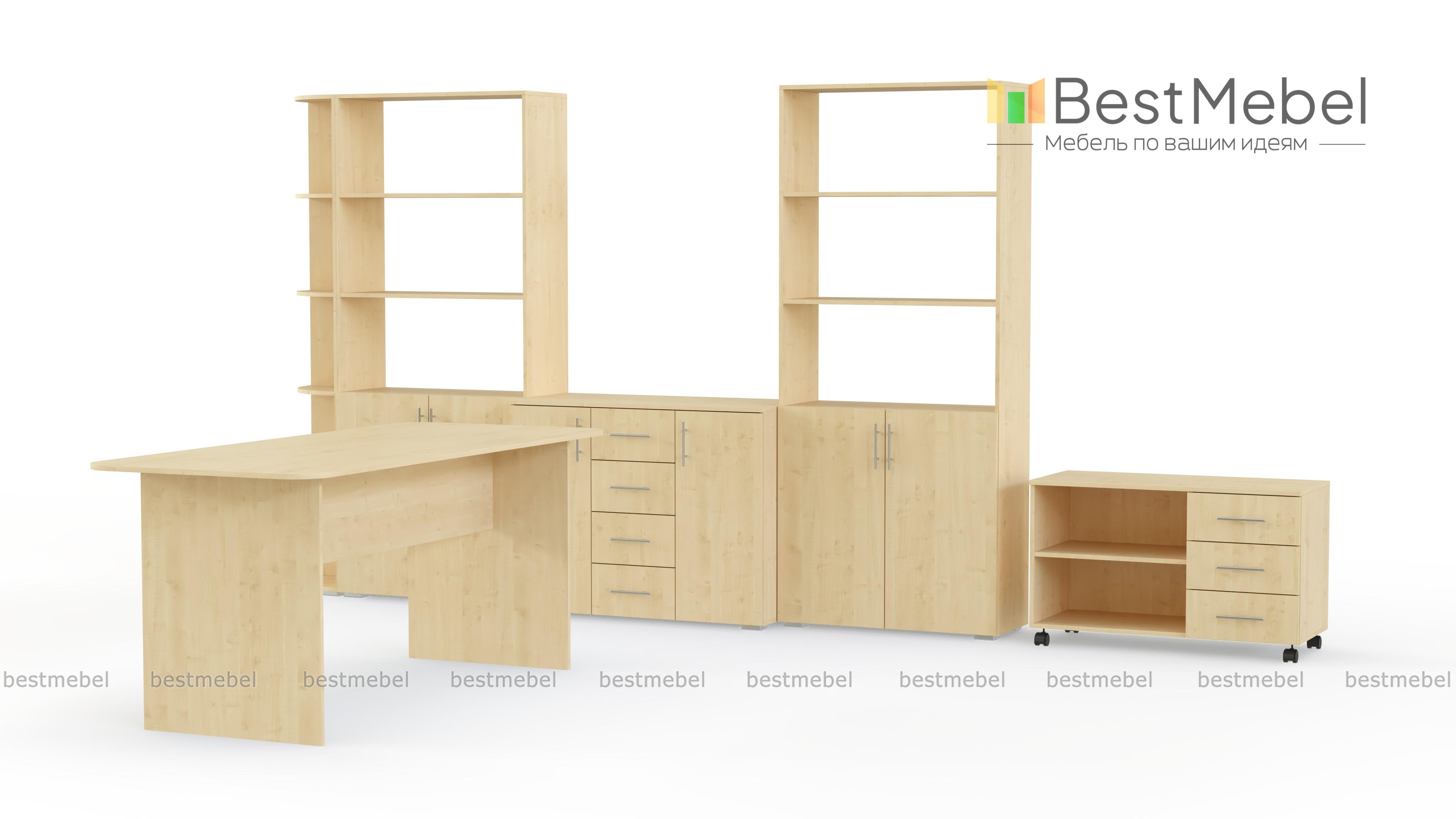 Доступен широкий выбор цветов для оформления корпуса и фасадов мебели, от белого, до насыщенного цвета венге. В комплект входит стол для конференций, тумба, комод, стеллаж и пенал. Мебель изготовлена из качественных материалов и фурнитуры. На протяжении срока ее эксплуатации, она не потеряет свой привлекательный внешний вид.