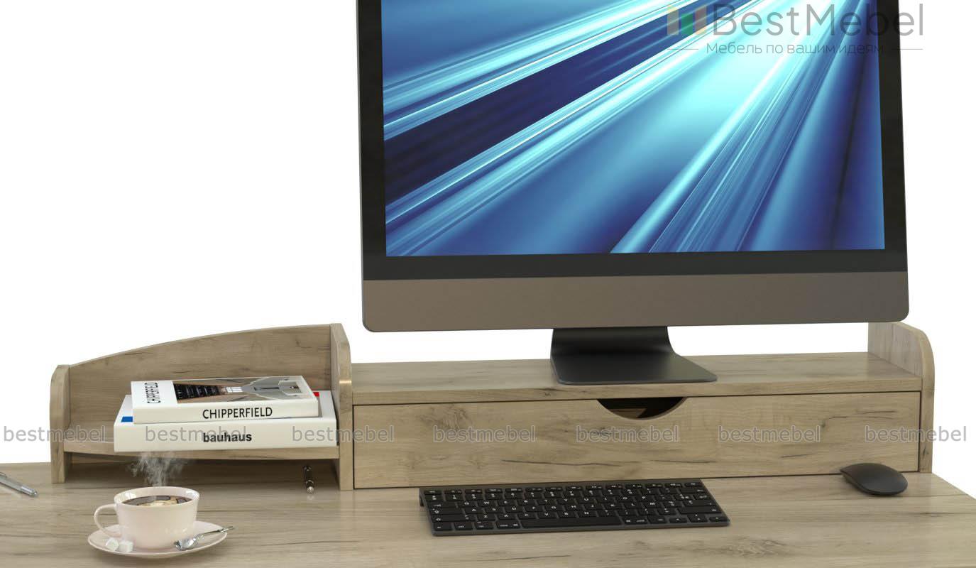 Подставка под монитор Лаф-13 BMS, помимо основной функции, помогает легко поддерживать порядок на рабочем месте. Прямая модель, оборудованная удобной для размещения монитора столешницей и выдвижным ящиком для мелочей, дополнена открытой торцевой секцией с полкой. Выполненная в древесных тонах в тон корпусу стола, подставка безопасно скруглена по углам. Купить подставку под монитор Лаф-13 BMS приглашаем в наш интернет-магазин с учетом оптимальных параметров.