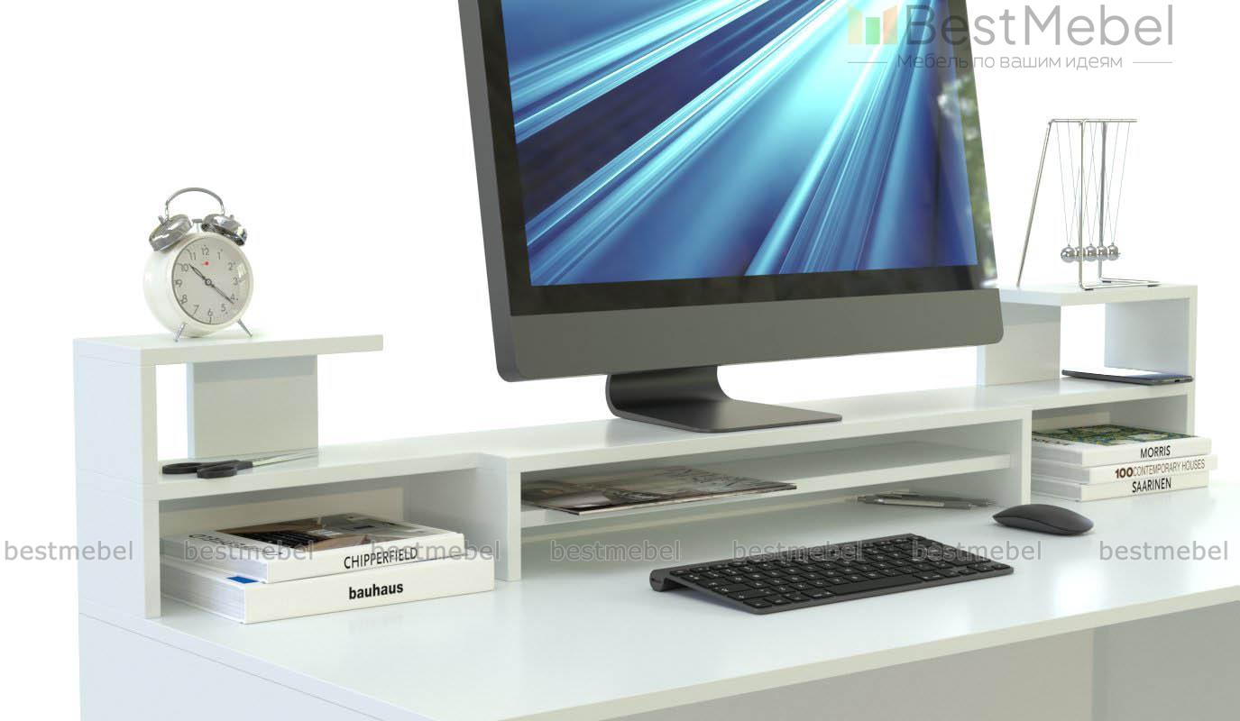 Подставка под монитор Прима-5 BMS поможет вам не только разместить дисплей на удобной для глаз высоте, но и легко поддерживать порядок на рабочем месте. Модель устанавливается на столешницу и представляет собой надстройку, выполненную из ЛДСП в тон корпусу. Открытые секции разных размеров незаменимы для хранения под рукой канцелярских мелочей, книг и учебных материалов, позволят убрать клавиатуру и установить прочие периферийные устройства. Купить подставку под монитор Прима-5 BMS вы сможете на сайте нашего интернет-магазина.