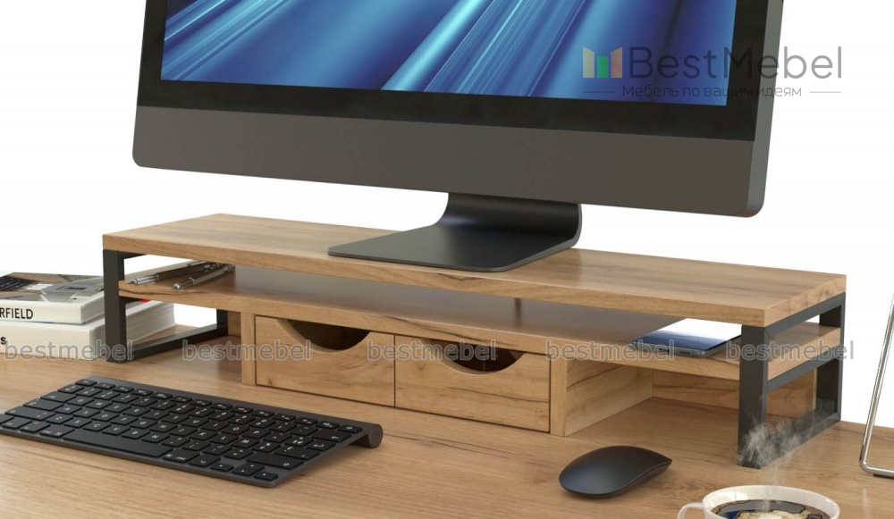 Подставка под монитор Сена-2 BMS – это прямая модель, которая устанавливается на рабочий стол и помогает рационально использовать пространство. Подставка с двойной широкой столешницей оборудована выдвижными ящичками для хранения мелочей и открытыми боковыми секциями. Поверхности теплых древесных тонов дополнены характерными для лофта металлическими опорами из профиля. Купить подставку под монитор Сена-2 BMS приглашаем в наш интернет-магазин с выбором цвета по каталогу.