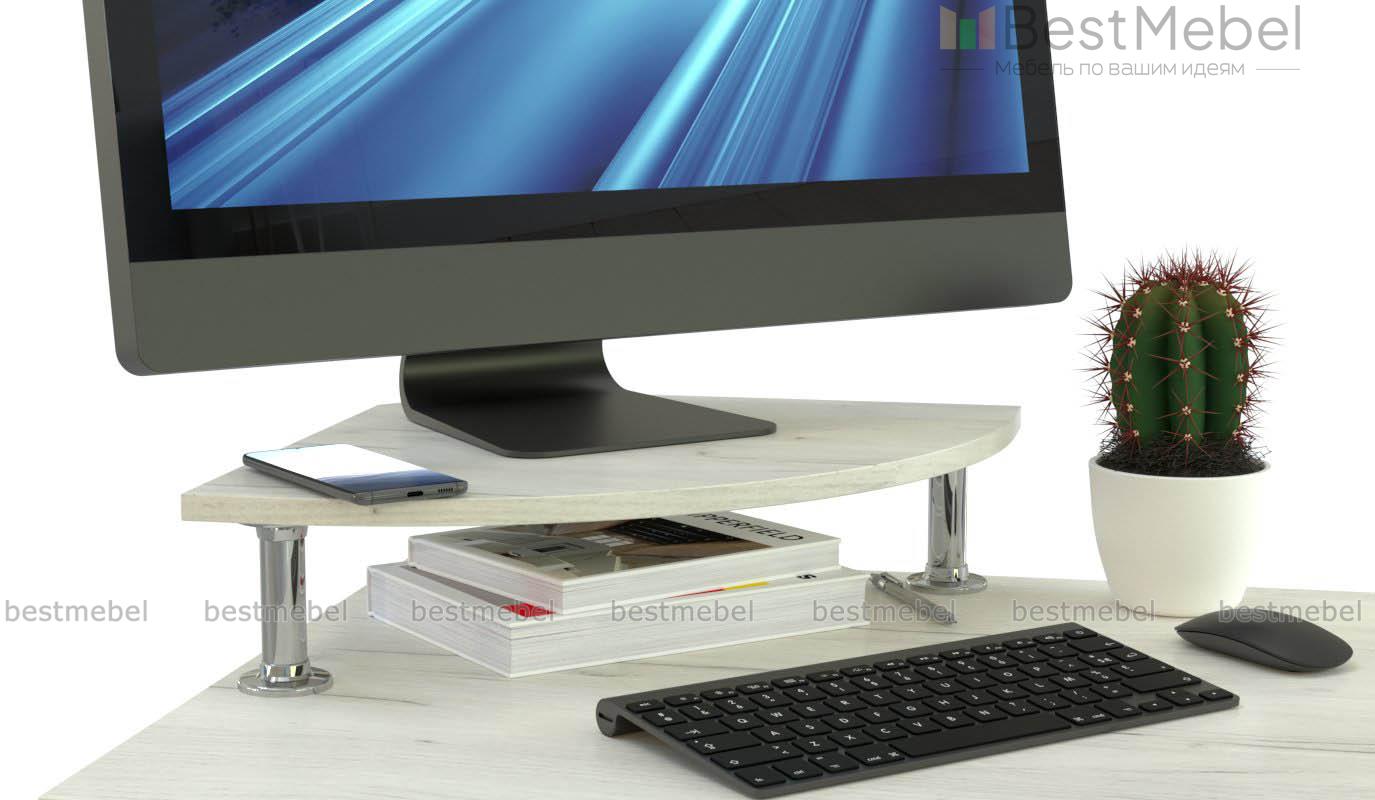 Подставка под монитор Соната-6 BMS станет универсальным выбором для современных рабочих столов. Радиусная модель выполнена в белом цвете и располагается на устойчивых хромированных опорах. Подставка не занимает много места благодаря угловой конструкции и позволяет как разместить монитор, так и скрыть клавиатуру, канцелярские мелочи, разнообразные рабочие материалы. Купить подставку под монитор Соната-6 BMS вы сможете в нашем интернет-магазине с выбором цвета и размеров.