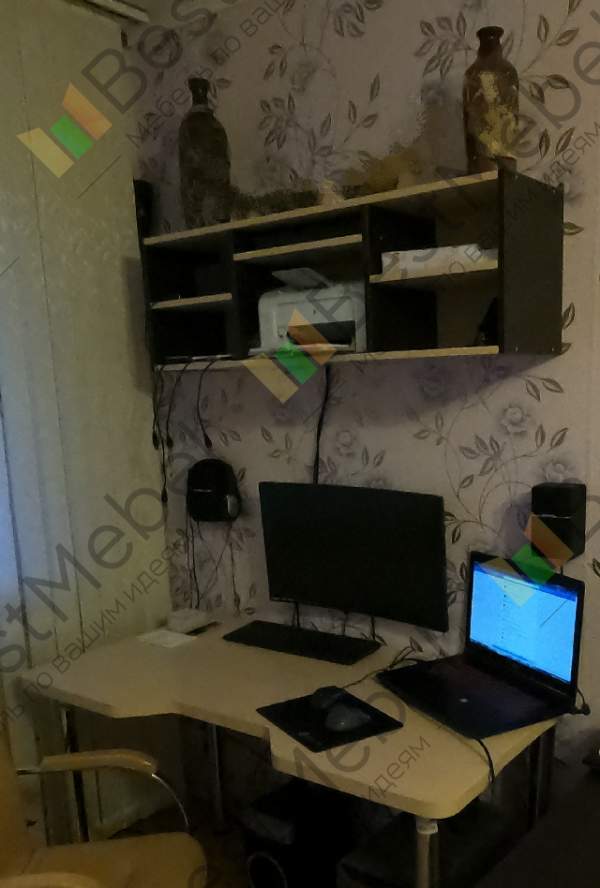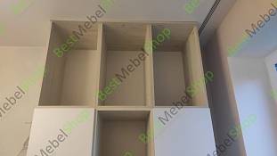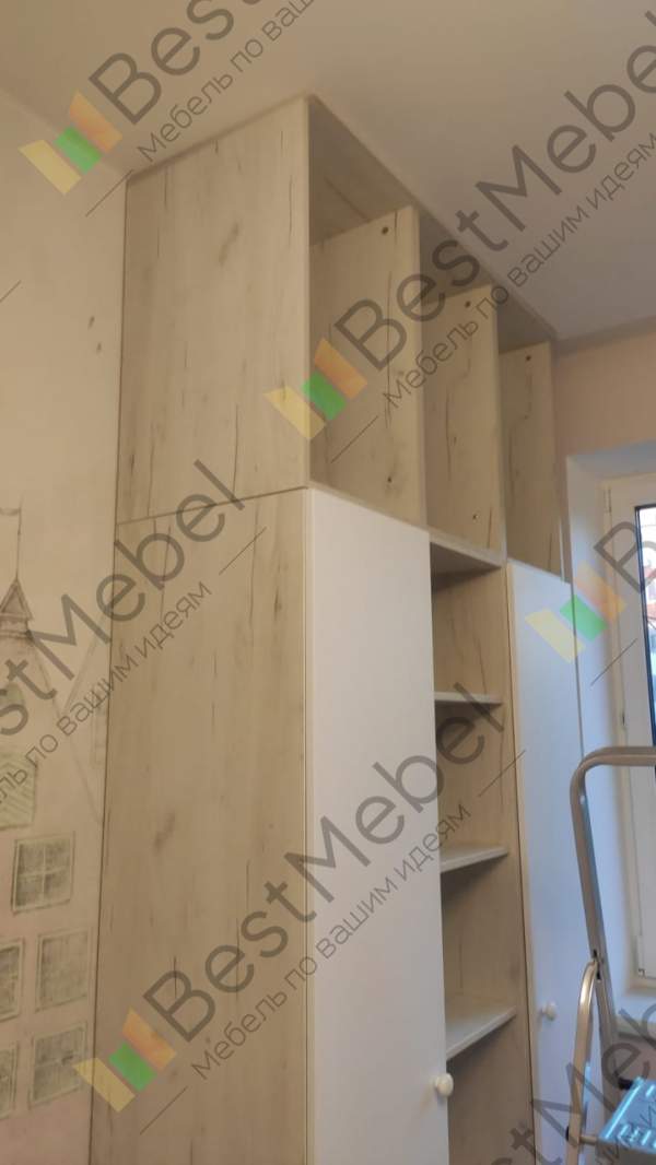 Купил в детскую двухметровый шкаф, захотелось добавить антресоль. В бестмебели нашёл настенную полку, примерно подходящую под мои нужды, измерил верх шкафа рулеткой и расстояние до потолка, в конструкторе мебели забил эти размеры и выбрал цвет ЛДСП. Потом по телефону согласовал эскиз, который начертили в компании и дождался доставки. Сборка была простой, чертёж со спецификацией прилагались, поэтому перепутать что-то было трудно. Цвет ЛДСП идеально совпал с цветом шкафа по оттенку, я думал, будет отличаться, но мне очень повезло. Из минусов специально сфотографировал, как выпирают эксцентрики в некоторых местах, значит недостаточно глубоко отфрезерованы отверстия под них, сверху уже не наклеишь наклейку или не вставишь заглушку, всё равно будут торчать. Мне для антресоли это не принципиально, но для кого-то может быть важно.