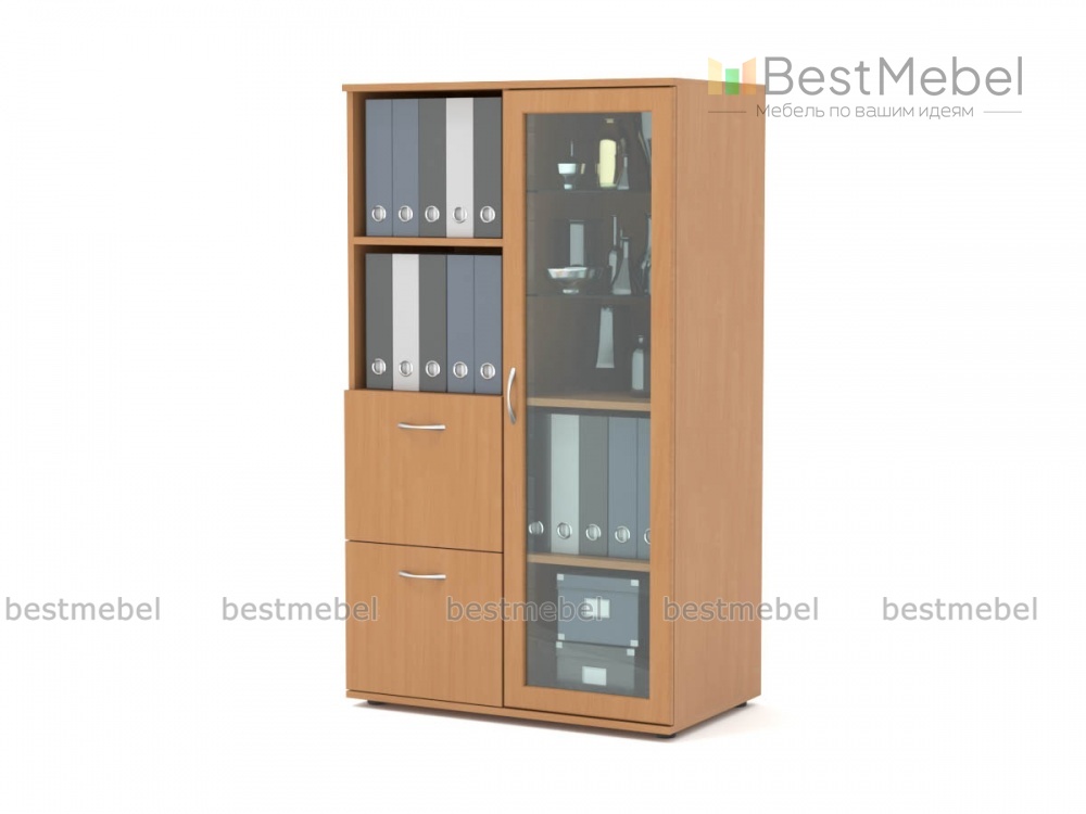 Шкаф № 3 ГР-01-г BMS – невысокая комбинированная модель, компактная, но вместительная. Шкафчик в древесных тонах оборудован открытыми полками, просторными выдвижными ящиками и распашным отделением со стеклянной дверцей в рамке, за которой две стандартные и две стеклянные полки. Благодаря комбинации разных типов отделений вы легко разместите книги, папки с документами, канцелярские принадлежности и предметы декора. Купить шкаф № 3 ГР-01-г BMS BMS, подобрав оптимальные параметры, вы сможете недорого в нашем интернет-магазине.