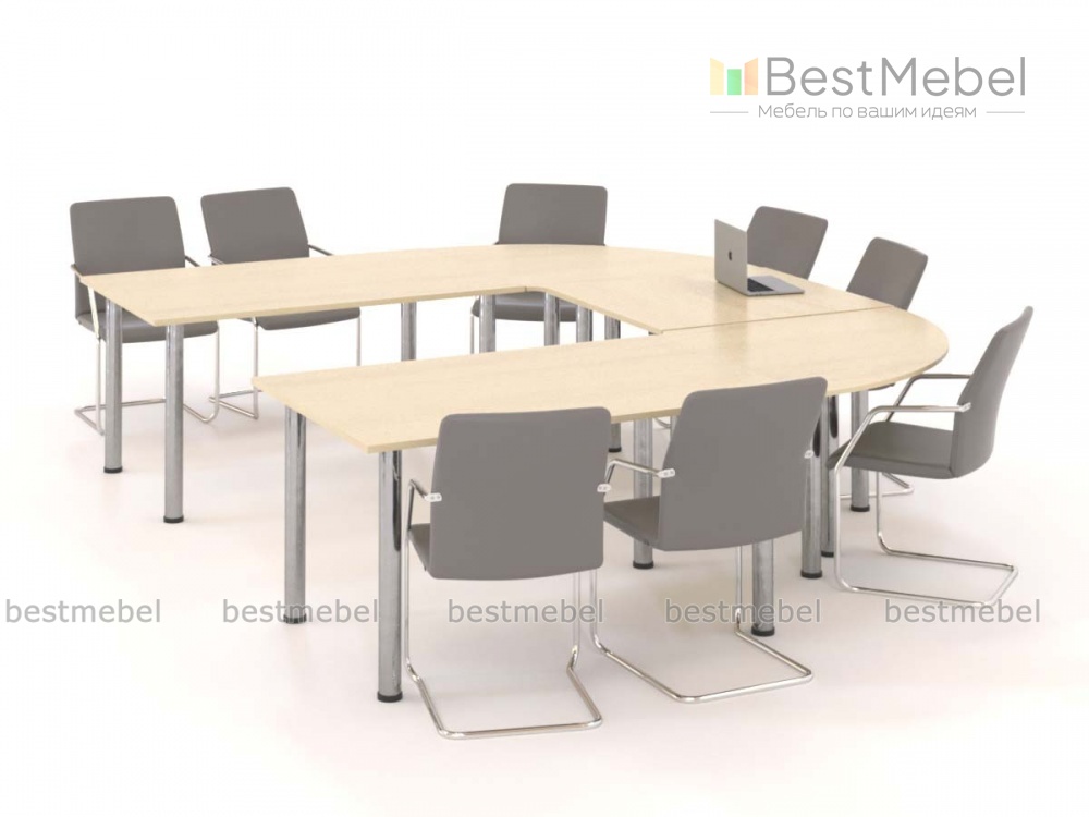 Стол для переговоров Multimeeting к4 BMS с комфортом разместит до 8 человек. Модульная композиция включает в себя три прямоугольных стола и два скругленных приставных, которые легко комбинируются друг с другом и могут использоваться по отдельности. Стол лаконичного дизайна, выполненный из качественной ламинированной плиты и металла, прекрасно подходит для современных офисов. Купить стол для переговоров Multimeeting к4 BMS вы сможете в нашем интернет-магазине с выбором цвета и размеров.