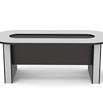 Стильный и оригинальный стол для переговоров, рассчитан на комфортное размещение 6 человек. Нестандартный дизайн сочетает в себе сразу несколько оттенков, которые можно комбинировать по своему усмотрению. Конструкция смотрится массивно и презентабельно, занимая достойное место в интерьере офиса.