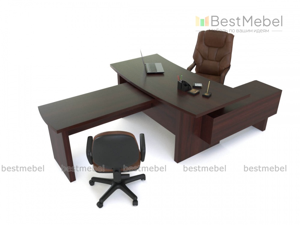 Стол руководителя Капитан BMS отличается внушительными габаритами и будет гармонично смотреться в интерьере просторного рабочего кабинета. Сочетание элегантных форм и благородных древесных оттенков подчеркнет статусность вещи, а залогом успешной работы станет продуманный до мелочей дизайн. Письменный стол со скругленной столешницей, дополнен тумбой с выдвижными ящиками, вместительной греденцией и приставным брифингом. Купить стол руководителя Капитан BMS вы всегда сможете в нашем интернет-магазине.