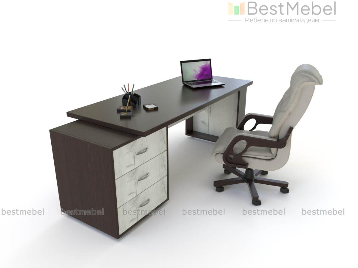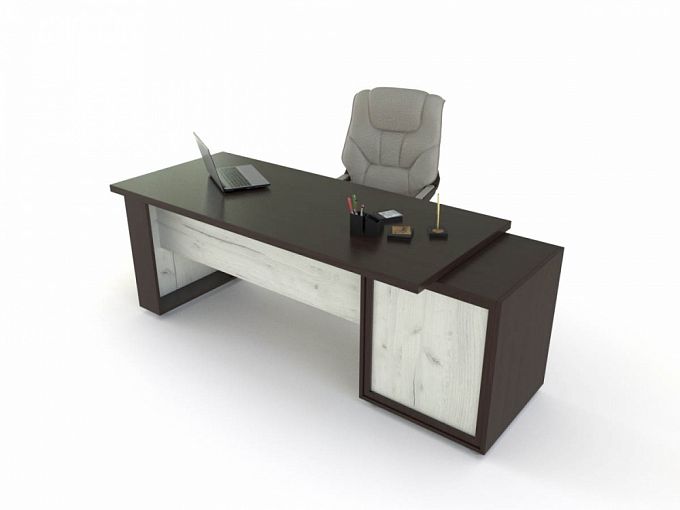 Стол руководителя Келли 2 BMS отличают строгие, геометричные формы и цветовое решение в актуальных тонах. Ультрасовременная модель станет частью дизайнерского интерьера, который подчеркнет высокий статус компании и руководителя. Двухцветный письменный стол с прямоугольной столешницей опирается на тумбу с выдвижными ящиками для удобного хранения документов, канцелярии, личных вещей. Устойчивость конструкции обеспечивают опоры. Купить стол руководителя Келли 2 BMS вы сможете в нашем интернет-магазине.