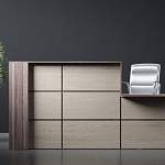 Стойка ресепшен № 14 3-1 BMS – крупногабаритная модель Г-образной формы, которая станет отличным решением для просторного помещения. Многофункциональная конструкция объединила комфортное рабочее место для администратора или секретаря с традиционной стойкой для приема посетителей. Модель оборудована удобными верхними столешницами, приставным столиком на хромированной опоре и внутренними столешницами с выдвижным ящиком для бумаг и канцелярии. Нейтральные древесные оттенки делают дизайн модели универсальным. Купить стойку ресепшен № 14 3-1 BMS для современного офисного интерьера вам поможет наш интернет-магазин.