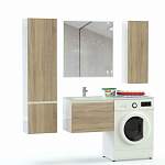 Комплект для ванной комнаты Стайн 2 BMS поможет вам рационально организовать пространство и сэкономить полезную площадь. Подвесная композиция включает в себя тумбу со столешницей под раковину и стиральную машину, высокий пенал, распашной шкафчик и большое прямоугольное зеркало без рамы. Модули минималистичного дизайна просты по форме и выполнены в нейтральном белом и древесном цвете из влагостойких материалов. Купить комплект для ванной комнаты Стайн 2 BMS по доступной цене приглашаем в наш интернет-магазин.