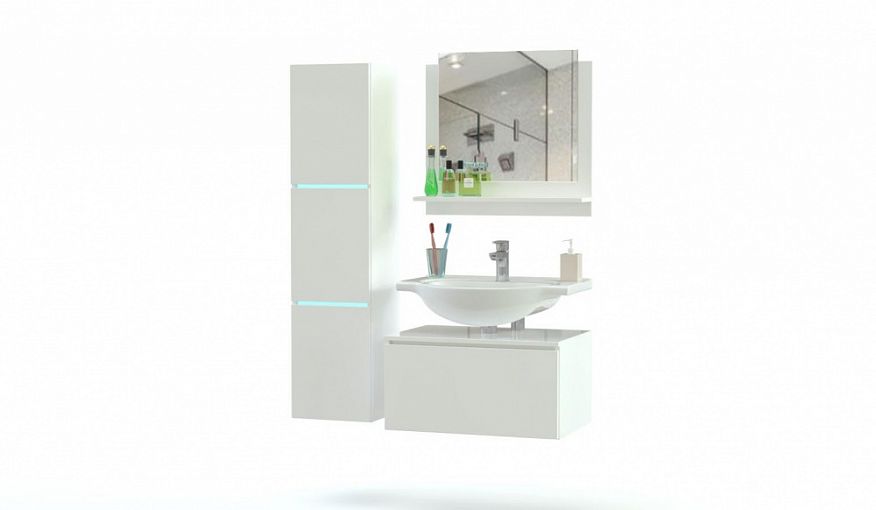 Комплект для ванной Сити 2 BMS поможет вам создать эффектный интерьер в стиле минимализм или хай-тек. Подвесная композиция включает в себя широкую тумбу под раковину с выдвижным отделением, вместительный пенал и панно с зеркалом, дополненное открытой полочкой для мелочей. Предметы выполнены в износостойком и простом в уходе белом глянце, встроенная подсветка придает интерьеру особенную атмосферность и помогает быстро найти нужную вещь. Купить комплект для ванной Сити 2 BMS приглашаем в наш интернет-магазин.