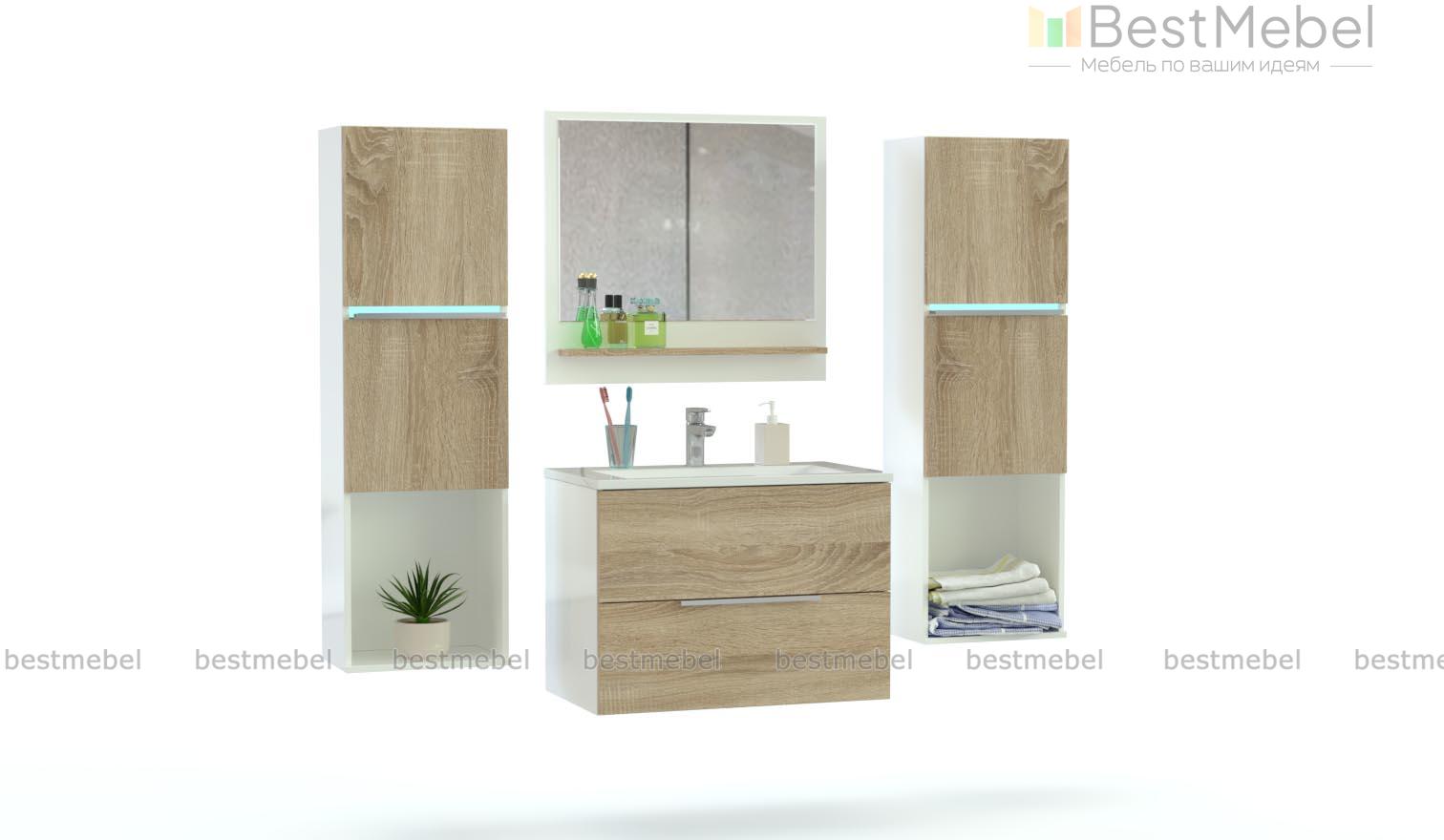 Комплект для ванной Сити 5 BMS выполнен в черно-белом глянце и отличается эффектным минималистичным дизайном. В составе подвесной композиции широкая тумба под раковину, два вместительных, комбинированных с нишами пенала, и навесное панно с зеркалом и открытой полочкой для мелочей. Особенно комфортным сделают пользование встроенная в пеналы подсветка и удобные торцевые ручки. Купить комплект для ванной Сити 5 BMS вы сможете в нашем интернет-магазине, подобрав цвета, фурнитуру и размеры.