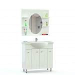 Мебель для ванной Бим 2 BMS – изящный комплект в винтажном стиле. Композиция состоит из напольной тумбы с четырьмя распашными дверцами и навесного панно с овальным зеркалом и открытыми полочками для уходовых мелочей – широкой нижней и четырьмя боковыми. Фасады предметов, выполненные из влагостойких материалов, декорированы оригинальной фрезеровкой, легкость и устойчивость тумбе обеспечивают высокие ножки. Купить мебель для ванной Бим 2 BMS вы сможете в нашем интернет-магазине по отличной цене.