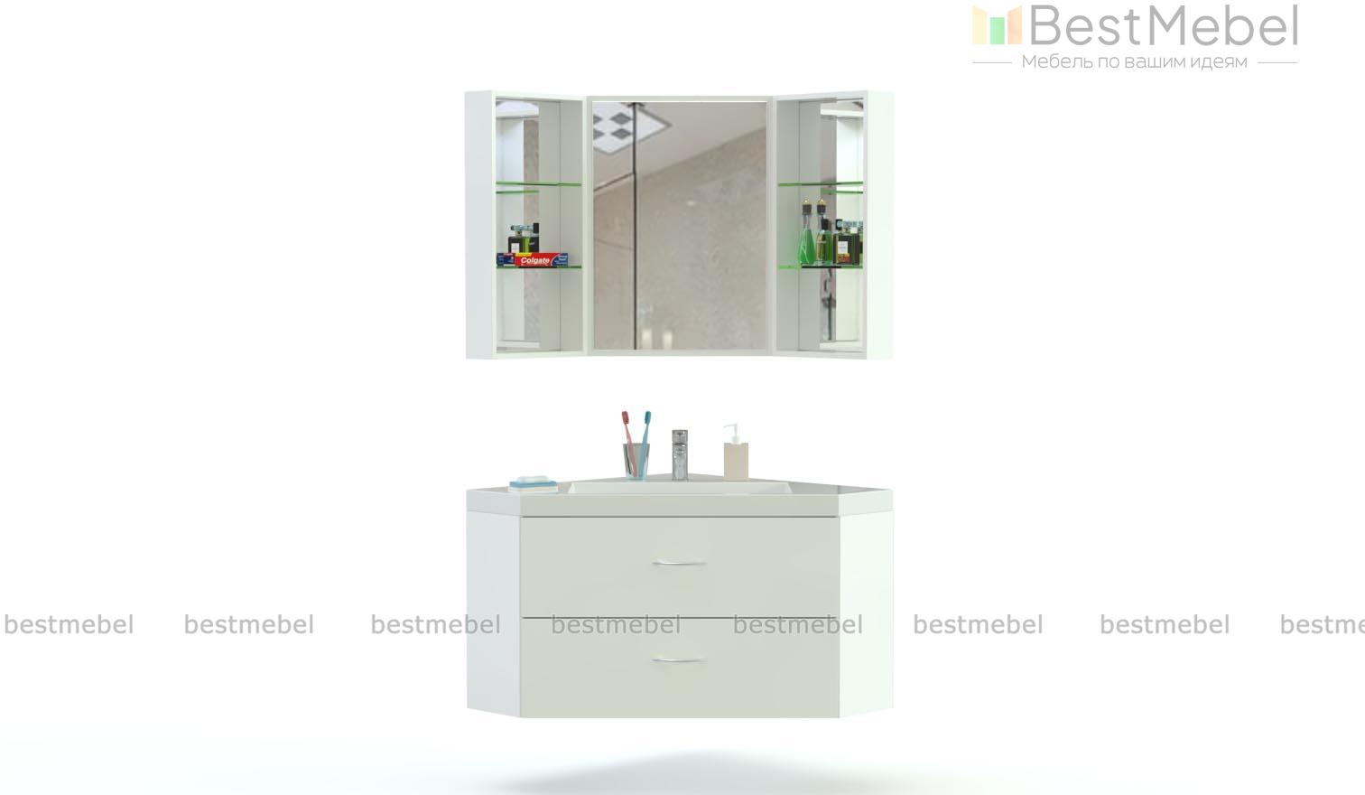 Мебель для ванной Клора 4 BMS сможет задействовать пустующее угловое пространство и сэкономить полезную площадь комнаты. Оригинальная подвесная композиция включает в себя тумбу под раковину с двумя выдвижными ящиками разных размеров и зеркальный шкаф с открытыми боковыми полочками для хранения уходовых средств. Лаконичные формы и бежевые глянцевые поверхности делают мебель универсальной для современных интерьеров. Купить мебель для ванной Клора 4 BMS приглашаем в наш интернет-магазин.