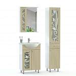 Мебель для ванной Лючия 2 BMS подходит для небольших помещений благодаря компактным размерам. Оригинальная современная композиция включает в себя распашную тумбу под раковину, зеркало с боковым шкафчиком для мелочей, открытой полкой и подсветкой и высокий, комбинированный с выдвижным ящиком пенал. Выполненные в белом цвете, предметы декорированы стеклянными вставками с абстрактным рисунком. Купить мебель для ванной Лючия 2 BMS приглашаем в наш интернет-магазин по доступной цене.