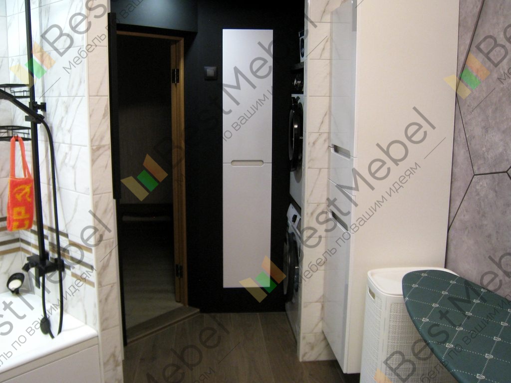 Заказ 00000913114, Пенал в ванную Блейк 5 BMS (350х1855х100).Стояла задача вставить неглубокий пенал определенного дизайна (фасады белый глянец лак, фрезеровка "без ручек") размеров и комплектации (петли Clip-On с доводчиком, без полок и задней стенки) в готовый проем легкой каркасной стены. Чтобы, так сказать прикрыть заподлицо со стеной дверцами общего для ванной дизайна электроподключение стиральной и сушильной машин в стойке рядом, ну и швабру с веником…Заказ оговорили и подтвердили, привезли через 10 дней. Сборка и установка прошли без проблем, кое-где по месту я уж сам подработал без претензий к компании.Результатом доволен, спасибо за широкие возможности для творчества!