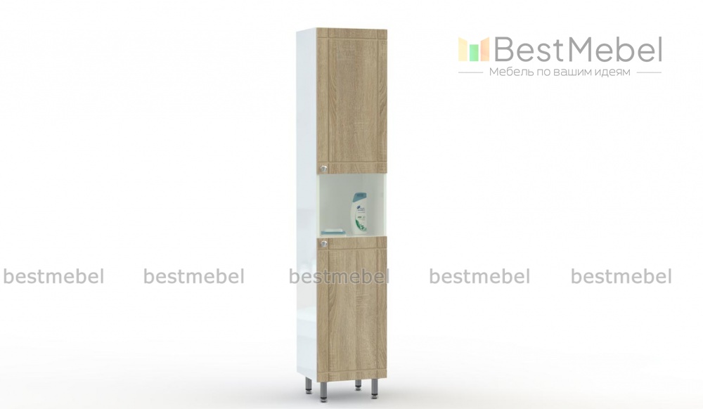 Пенал в ванную комнату Ной 3 BMS дополнит современный интерьер удобной системой хранения. Высокая напольная модель располагается на регулируемых хромированных опорах и выполнена в светлом древесном оттенке с лаконичной фрезеровкой. Два распашных отделения с полками и открытая секция в центральной части помогут вам максимально удобно разместить необходимые под рукой уходовые средства, текстиль и аксессуары. Купить пенал в ванную комнату Ной 3 BMS вы сможете в нашем интернет-магазине по доступной цене.