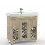 Тумба под раковину Хлоя 4 BMS отличается крупными габаритами и элегантным дизайном в современном классическом стиле. Широкая трехдверная модель фигурно вырезана по краю и выполнена в светлом древесном оттенке с фрезеровкой и стеклянными вставками на фасадах. Пристенная модель разместит раковину, скроет коммуникации и позволит хранить под рукой большое количество мелочей – гигиенические принадлежности, аксессуары и многое другое. Купить тумбу под раковину Хлоя 4 BMS приглашаем в наш интернет-магазин.