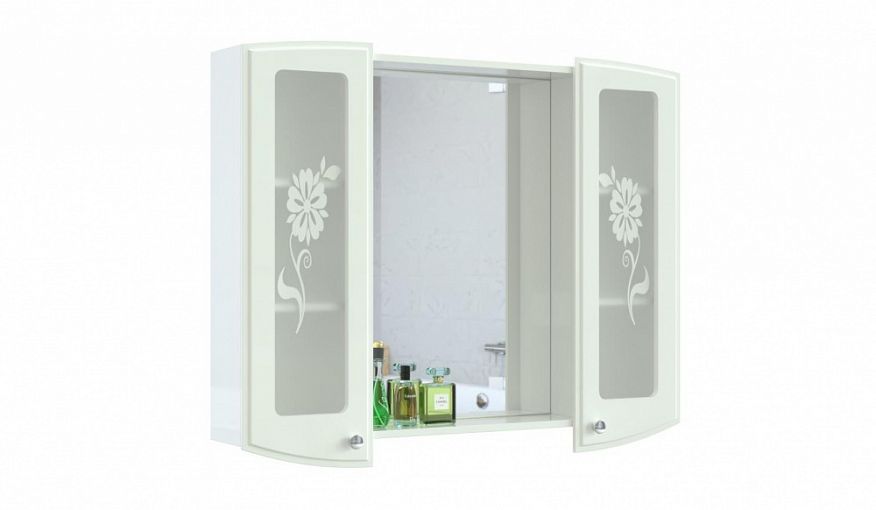 Зеркальный шкаф в ванную Краст 6 BMS предназначен для меблировки просторных помещений, отличаясь вместительностью и элегантным современным дизайном. Широкая подвесная модель с зеркалом в центре оборудована двумя распашными отделениями со скошенными фасадами и открытой нижней полочкой для мелочей. Шкаф выполнен в нейтральном белом цвете и декорирован стеклянными вставками с рисунком. Купить зеркальный шкаф в ванную Краст 6 BMS приглашаем в наш интернет-магазин.