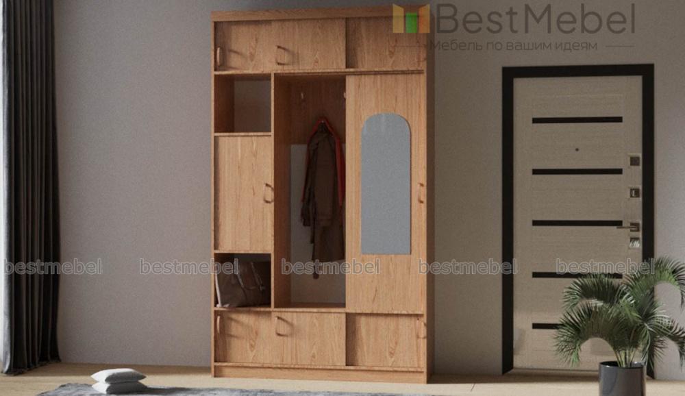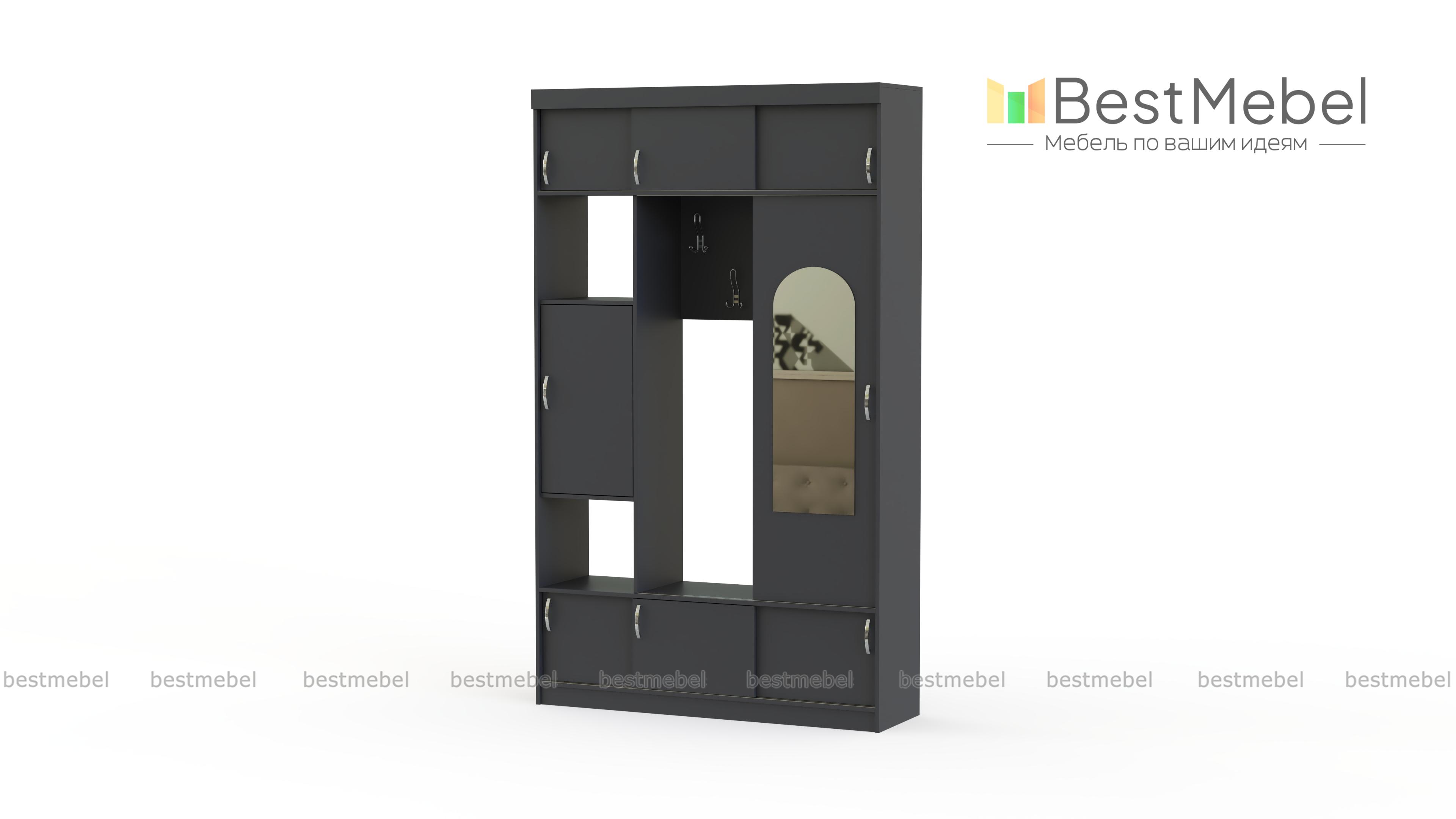 Прихожая №3 – это очень компактная модель, которую можно установить в прихожую небольших размеров. Несмотря на свои габариты, она очень вместительная – помимо открытой вешалки для верхней одежды и закрытого шкафа, есть нижние и верхние антресоли для хранения головных уборов и других вещей. Расположение элементов в конструкции обеспечивает удобный доступ к каждому предмету гардероба. Наш интернет-магазин дает Вам возможность выбрать другой цвет модели и заказать её по выгодной цене.