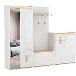 Прихожая Алабама 12 BMS эффектно сочетает в оформлении белоснежный глянец и декор светлых древесных тонов. Модульная композиция включает в себя все необходимое комфортной входной зоне – распашной шкаф с ящиками и зеркалом на фасаде, открытую вешалку с обувницей и вместительный высокий комод. Дополнение в виде светодиодной подсветки облегчит поиски нужной вещи и придаст интерьеру уютный и атмосферный вид. Купить прихожую Алабама 12 BMS приглашаем на сайт нашего интернет-магазина.