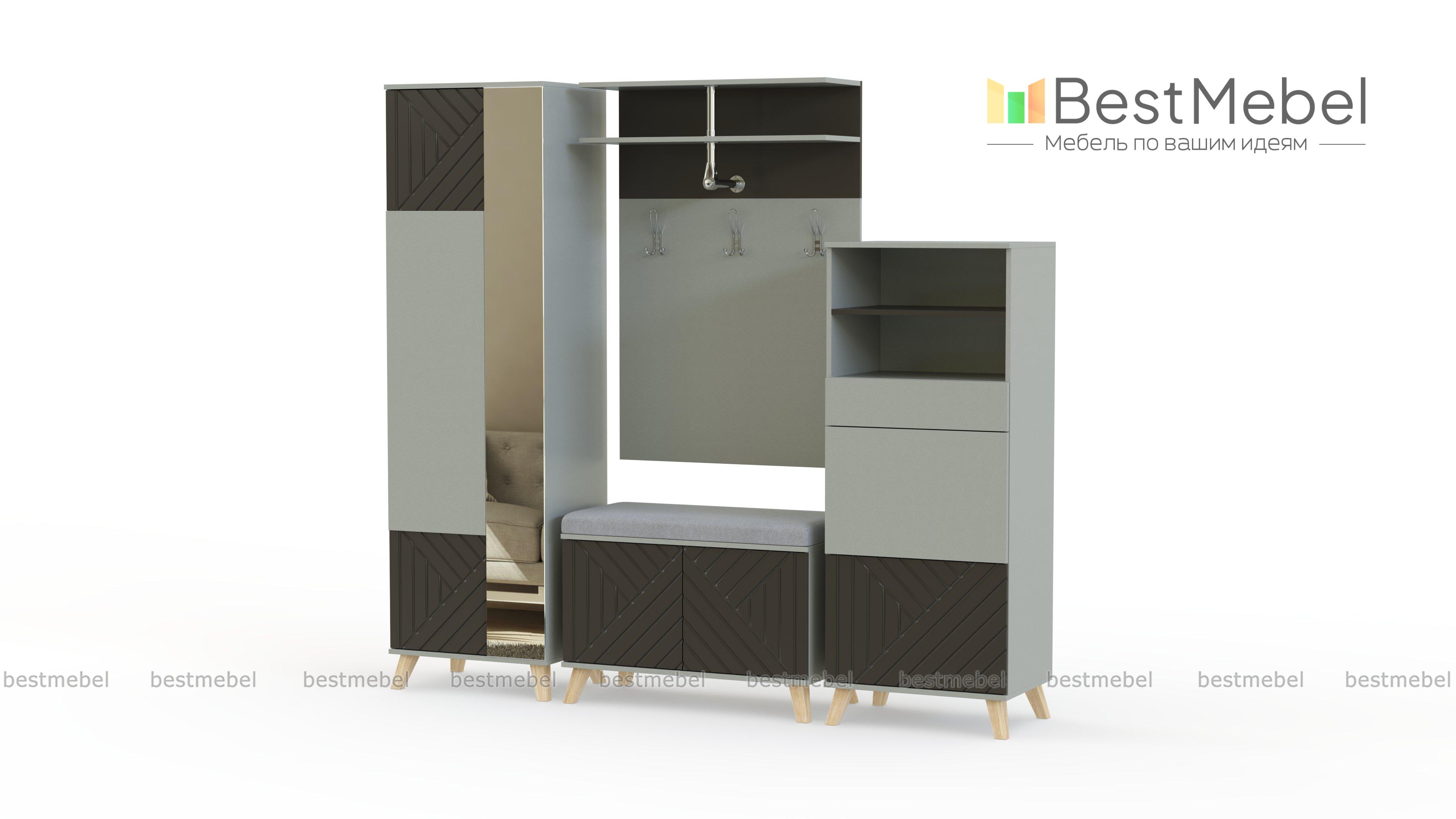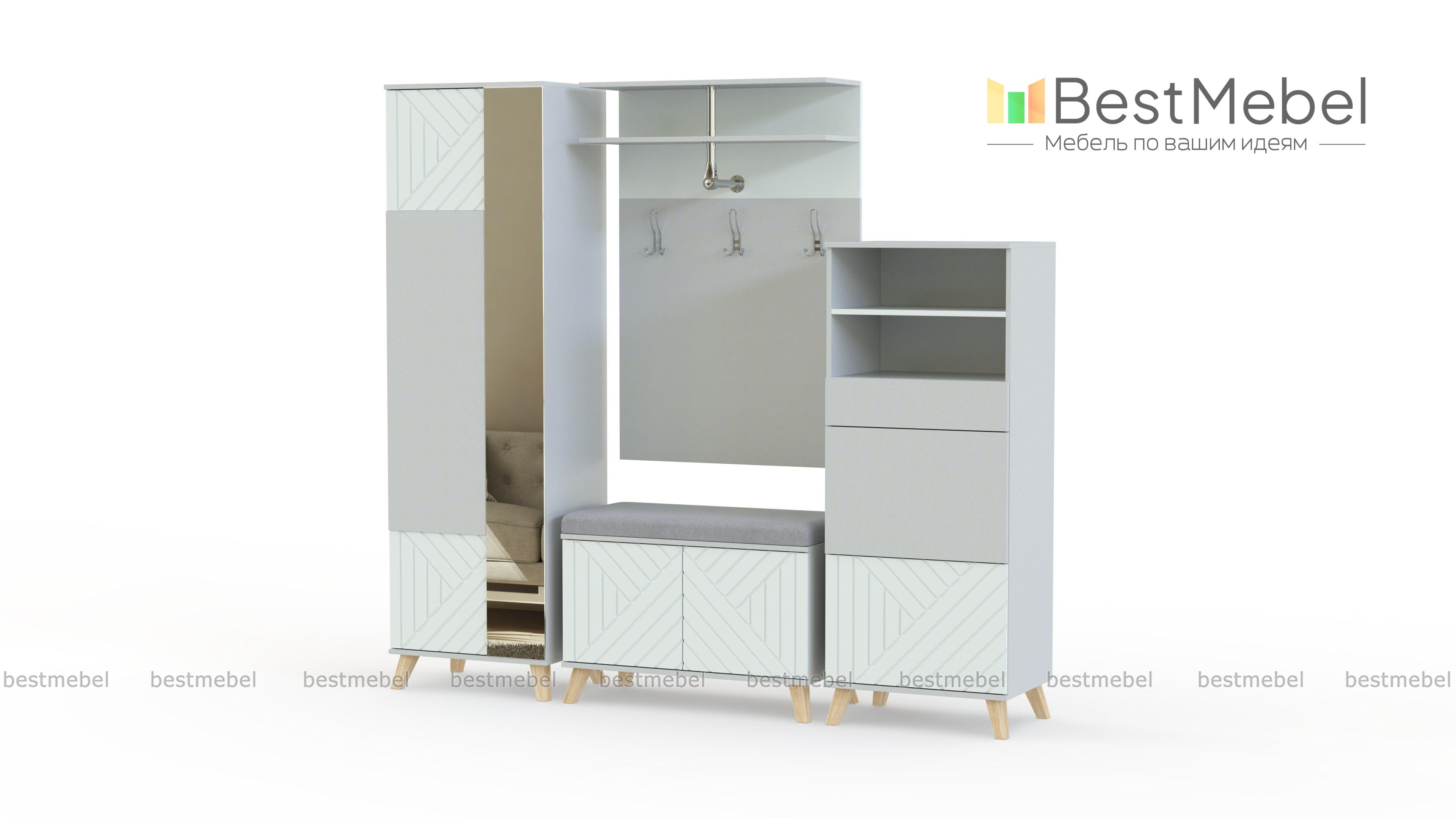 Прихожая Диана 12.3 BMS с лаконичным силуэтом оформит входную зону в современной эстетике. Модульная композиция включает в себя распашной шкаф, обувницу с мягкой обивкой сиденья, высокую комбинированную тумбу и настенную вешалку, оснащенную крючками, двухъярусной верхней полкой и штангой. Стильные акценты с рельефной 3D фрезеровкой оживляют интерьер, а зеркальная накладка создает эффект открытого пространства. Купить прихожую Диана 12.3 BMS вы сможете в нашем интернет-магазине, по желанию изменив цвет и размеры.