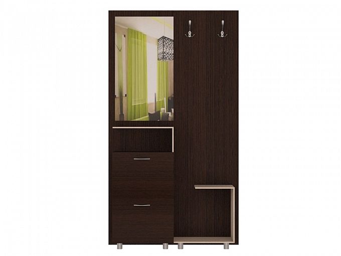 Прихожая Хай-тек 8 BMS – современная модель компактных размеров, прекрасный выбор для малогабаритного помещения. Прихожая максимально лаконична по форме и выполнена в темных древесных тонах, а в качестве декоративного элемента выступает креативная контрастная полочка. В комплекте панель с зеркалом и крючками для одежды и вместительная тумба. Купить прихожую Хай-тек 8 BMS и дополнить домашний интерьер удобной системой хранения вам поможет наш интернет-магазин.