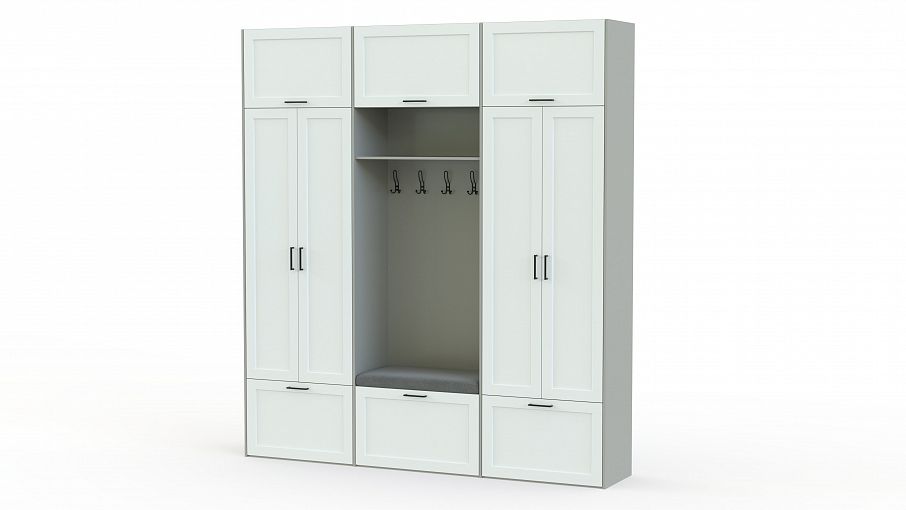 Прихожая Клэр 13 BMS - это элегантная современная классика с рамочными фасадами. По периметру располагаются двухдверные платяные отделения, антресоли и ящики для обуви и аксессуаров, а в центре - открытая вешалка с крючками и полкой. Гармоничное цветовое сочетание создают нейтральные и светлые оттенки, а лаконичная фурнитура идеально вписывается в строгую концепцию. Купить прихожую Клэр 13 BMS вы сможете в нашем интернет-магазине с выбором размеров и цветового решения по своему вкусу.