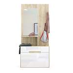 Прихожая Kristin BMS может стать как модулем в комплекте, так и независимым предметом меблировки. Компактная модель представляет собой сочетание панели с зеркалом, крючками и полкой и тумбы с двумя отделениями. В оформлении красиво сочетаются оттенки под массив дерева и универсальный белый, декор – скругленный вырез на тумбе. Незаменимая в малогабаритных помещениях, модель аккуратно разместит самое необходимое. Купить прихожую Kristin BMS по демократичной цене вы сможете в нашем интернет-магазине.
