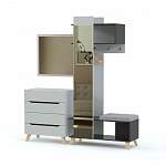 Прихожая Лили 13.4 BMS – прекрасный выбор для малогабаритной квартиры или объединенного пространства студии. Модульная композиция включает в себя комод, навесное зеркало и многофункциональную зеркальную вешалку с крючками, штангой, полкой под головные уборы и оснащенной мягким сиденьем обувницей. Природная древесная фактура, цветовые акценты и декоративные ручки-вырезы – все это придает интерьеру особенную выразительность. Купить прихожую Лили 13.4 BMS вы сможете на сайте нашего интернет-магазина с выбором цвета и размеров.