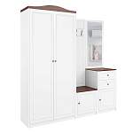 Прихожая Надин BMS выполнена в популярном стиле кантри и станет частью уютного современного интерьера. Модульный комплект включает в себя распашной шкаф для одежды, стойку с открытой вешалкой и обувницей и зеркало с тумбой. В оформлении прихожей гармонично сочетаются универсальный белый и вставки древесных тонов, фасады с горизонтальным декором украшает фурнитура под серебро. Купить прихожую Надин BMS и сделать хранение одежды, обуви и уход за собой максимально комфортными вам поможет наш интернет-магазин.