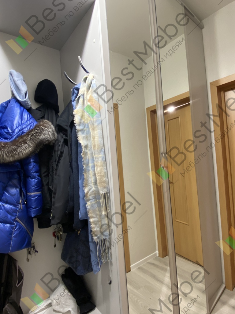 Огромный шкаф под потолок, мы его обожаем, очень нам нравится, цвет оставили без изменений и он идеально вписался под наши обои и даже не замечается особо. Очень много всего влезло и зимняя одежда вся и обувь.