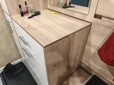 Прихожая Санторо BMS отличается минималистичным дизайном, а природные оттенки с имитацией древесной фактуры добавляют интерьеру тепла. Композиция радует большим количеством модулей: распашной шкаф, торцевой стеллаж, узкий двухдверный пенал, открытая вешалка, обувница и навесное зеркало, дополненное высокой тумбой. Светлые фасады без декора просты в уходе и долговечны. Купить прихожую Санторо BMS с учетом оптимальных размеров вы сможете в нашем интернет-магазине.