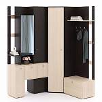 Угловая прихожая Тери 19 BMS компактно объединила все самое необходимое комфортной входной зоне в стильном разноуровневом комплекте. Угловая модель, выполненная в контрастных древесных тонах, включает в себя шкафы для одежды, открытую вешалку с обувницей и полкой под головные уборы, зеркало с полочкой для мелочей и оригинальную тумбу. Универсальный дизайн гармонично впишется в большинство современных интерьеров. Купить угловую прихожую Тери 19 BMS и сэкономить полезную площадь вам поможет наш интернет-магазин.