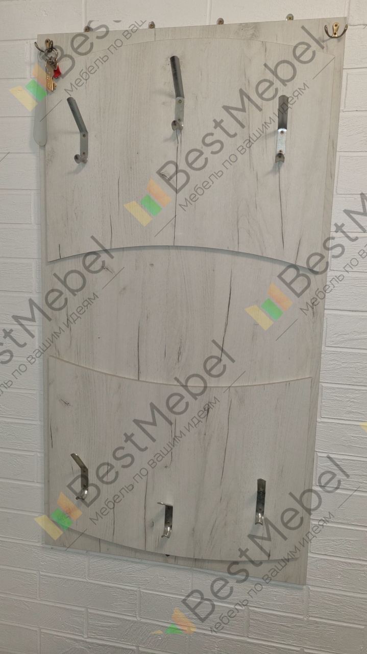 Вешалка такая же как и представлена на фотографии у компании. Помещается много верхней одежды. Собирается легко ,крючки маленькие для ключей докупали сами и муж прикручивал. Сверху посадили на четыре самореза чтобы наверняка ))))