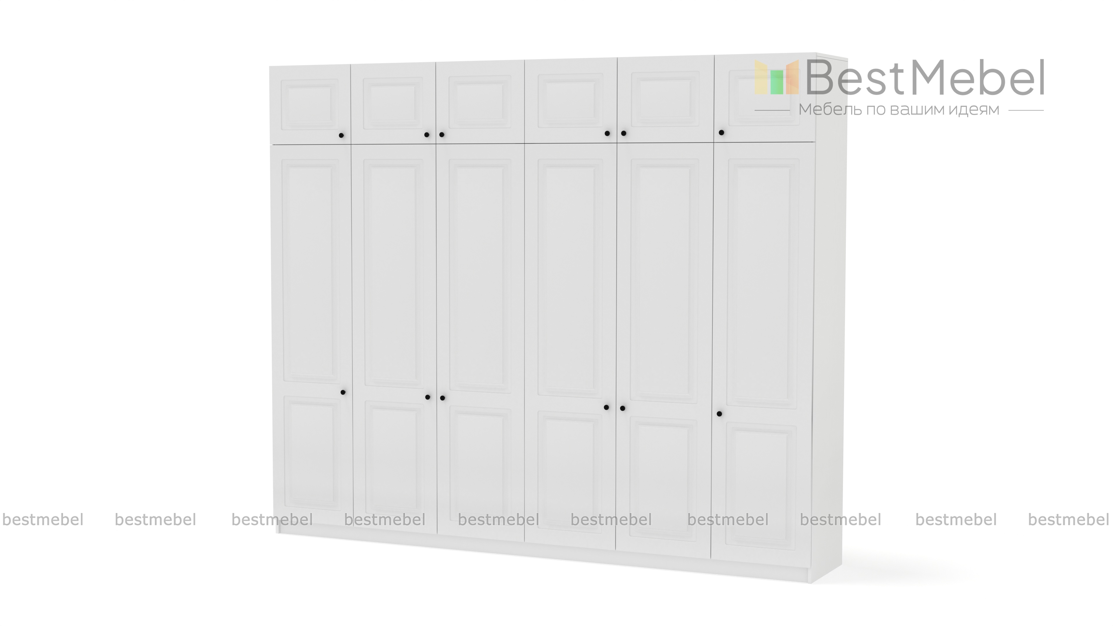 Шкаф распашной Бонн 14 BMS позволяет удобно организовать хранение за счет антресоли. Просторные платяные отделения и ряды полок дополнены сверху вместительными распашными шкафчиками. Шестидверная конструкция под потолок совсем не выглядит громоздко благодаря светлой палитре и лаконичному классическому оформлению со стильными акцентами ручек. Вшкафу вешалка для брюк, выдвижные ящики внутри и корзины для белья.