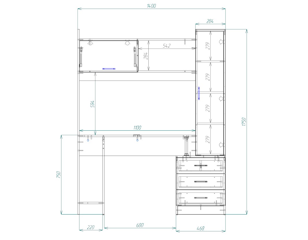Стол с пеналом Руби-1 BMS станет выбором тех, кто ценит современный дизайн и функциональность. Залогом успешной работы или учебы станет продуманная комбинация компьютерного стола и удобной системы хранения. Столешница прямоугольной формы дополнена нишей под системный блок, надстройкой с глухим шкафчиком и нишей и пеналом с выдвижными ящиками в основании. Купить стол с пеналом Руби-1 BMS вы сможете в нашем интернет-магазине от производителя BestMebelShop!