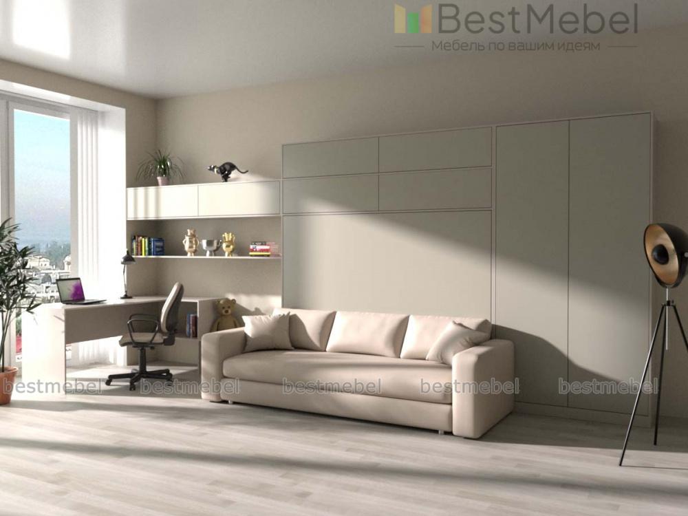 Шкаф-кровать с диваном Мазурка BMS поможет обустроить комфортную зону отдыха в небольшой детской комнате, гостиной или студии. Многофункциональная модель внешне напоминает компактный шкаф, дополненный диваном без подлокотников с объемными приспинными подушками. Получить полноценную двуспальную кровать вы сможете при помощи бокового механизма раскладывания, убрав подушки и нажав на фасад. Купить шкаф-кровать с диваном Мазурка BMS, оптимальный для узких помещений, приглашаем в наш интернет-магазин.