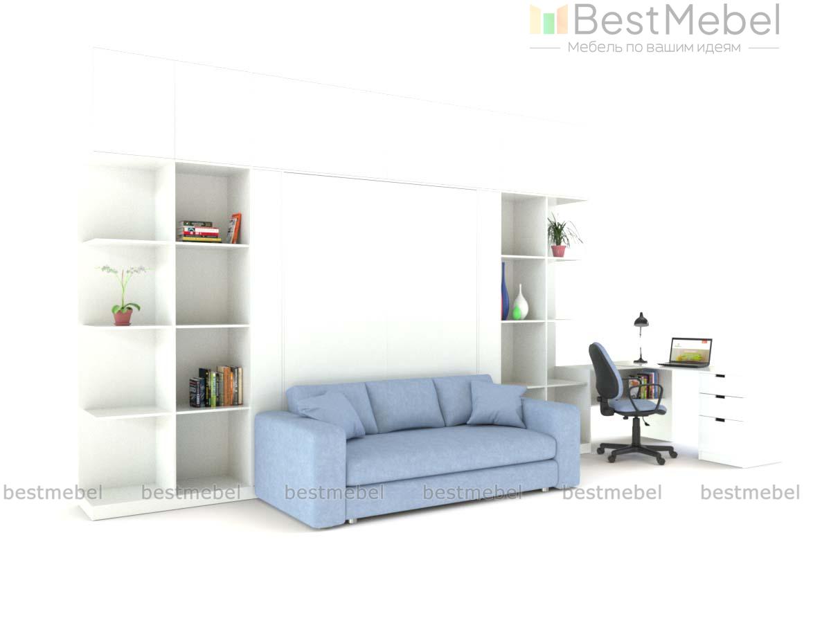Шкаф-кровать с диваном Долли 52 BMS отличается простым и эффектным дизайном в стиле минимализм. Высокая функциональность композиция позволит вам сэкономить полезную площадь молодежной комнаты или студии. Белоснежная модель оборудована вместительными книжными стеллажами, антресолью и откидным модулем с кроватью и оригинальным скругленным диваном. В изголовье комфортного спального места располагаются открытые полочки для мелочей. Купить шкаф-кровать с диваном Долли 52 BMS для визуально легкого и эргономичного интерьера приглашаем к нам в интернет-магазин.