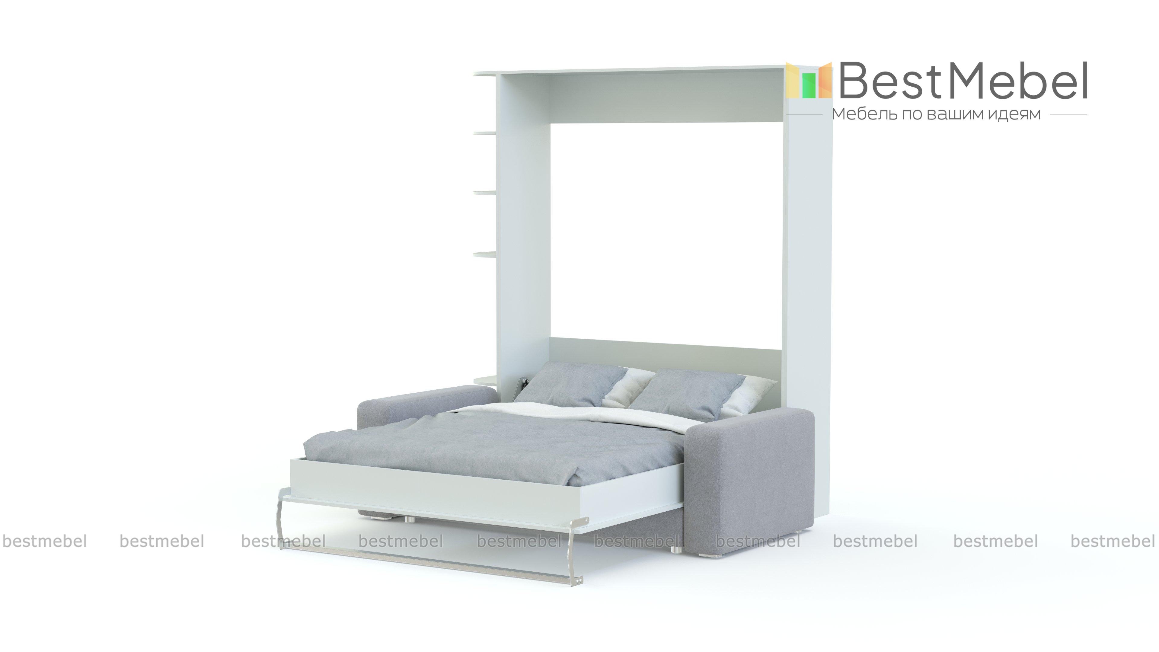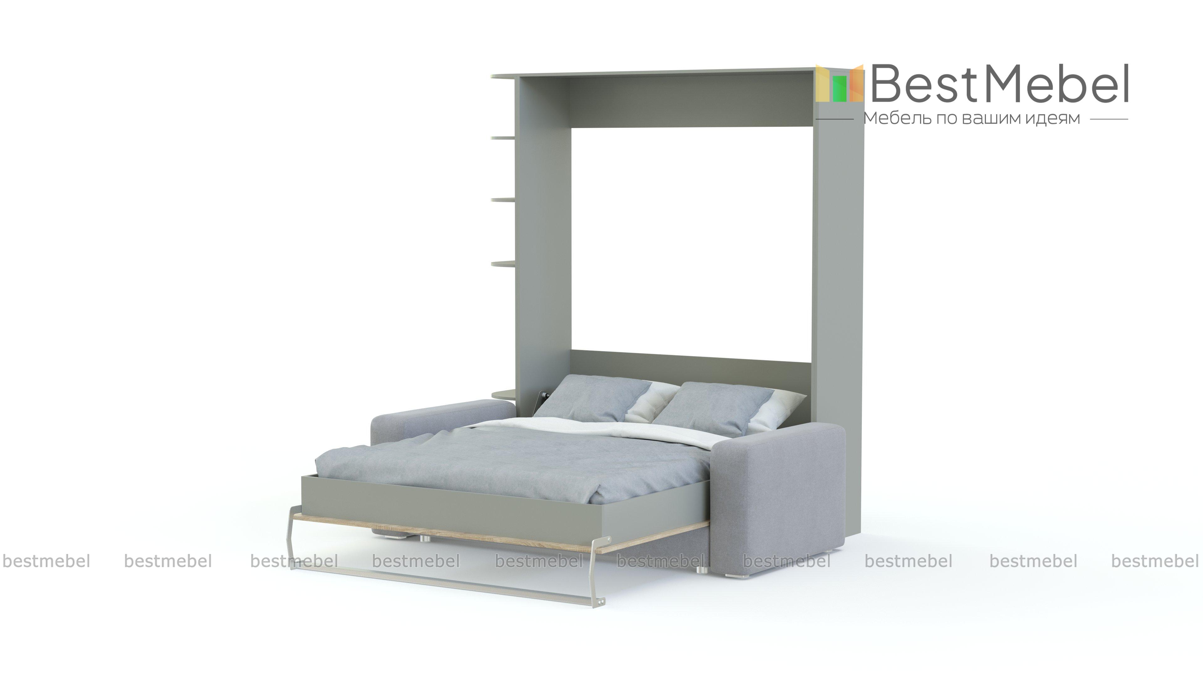 Шкаф-кровать с диваном Изабель-8 BMS позволит организовать комфортное спальное место в любом из помещений дома. В сложенном виде модель представляет собой небольшой шкаф с торцевым стеллажом и двухместным диванчиком с подлокотниками. При необходимости центральная откидная часть, замаскированная под дверцы, легко трансформируется в полноценную кровать. Выполненный в контрастных древесных тонах, шкаф гармонично вписывается в современные интерьеры. Купить шкаф-кровать с диваном Изабель-8 BMS приглашаем в наш интернет-магазин.