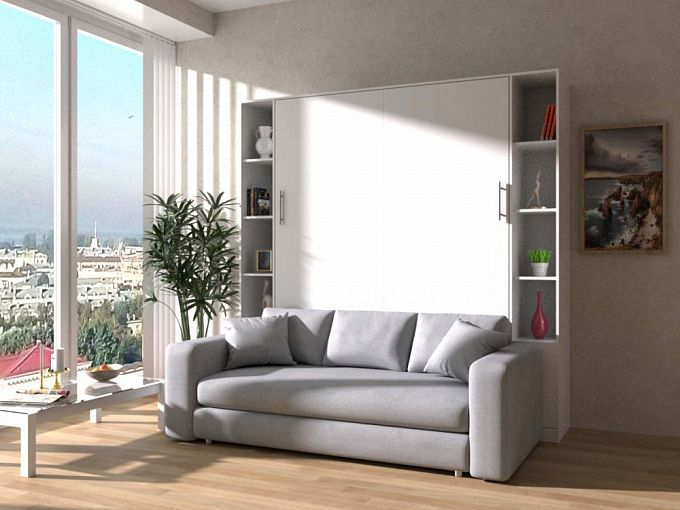 Мы не рекомендуем покупать пружинные матрасы к шкафу-кровати. Стоит отдавать предпочтение беспружинным изделиям. Это связано с тем, что поведение пружин в вертикальном положении матраса невозможно предсказать. Матрас быстро подвергается деформации и смещению слоев. Идеальным вариантом для откидной модели будет лёгкий беспружинный матрас, основу которого составляют современные материалы, не имеющие в составе пружины.