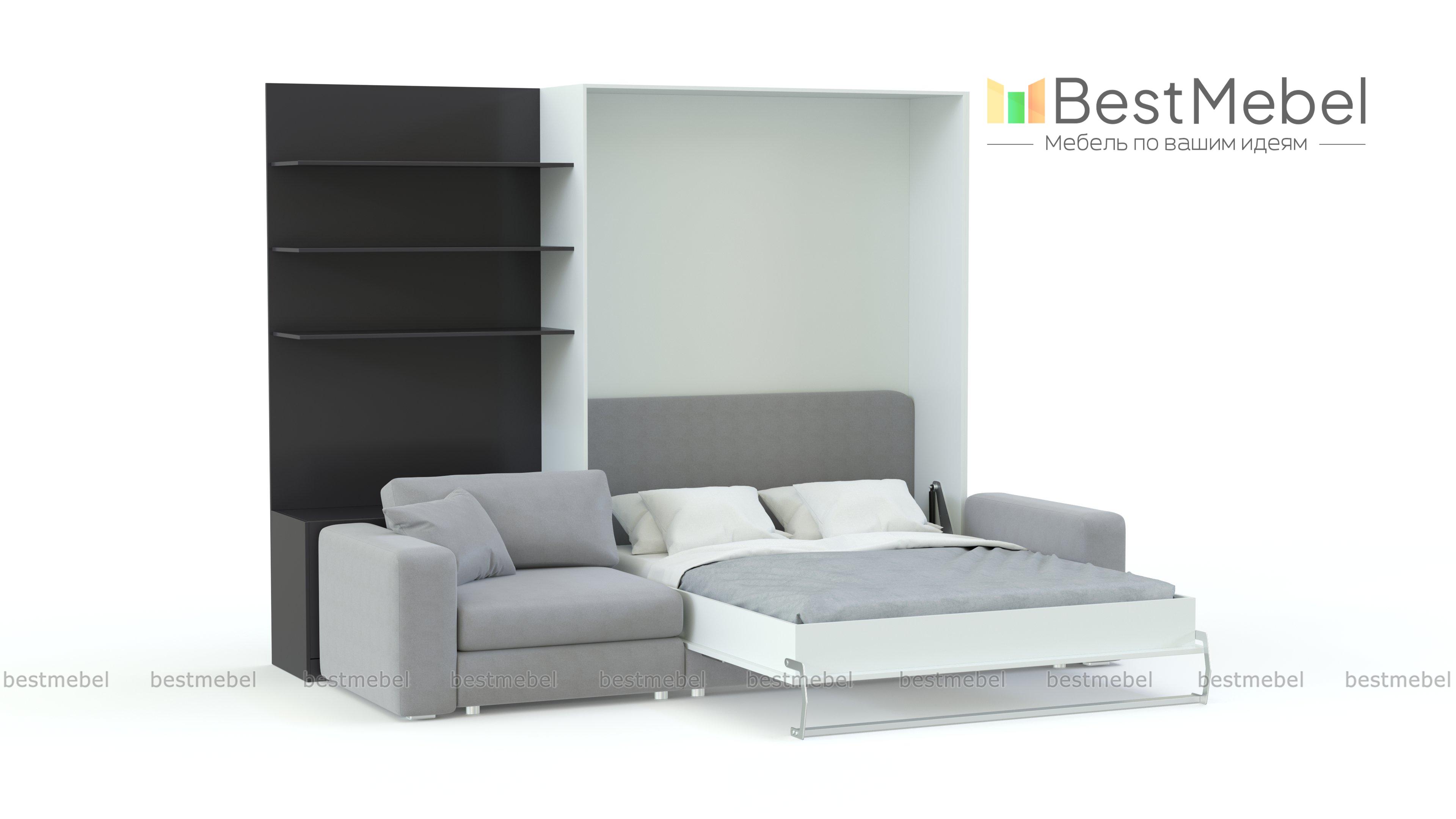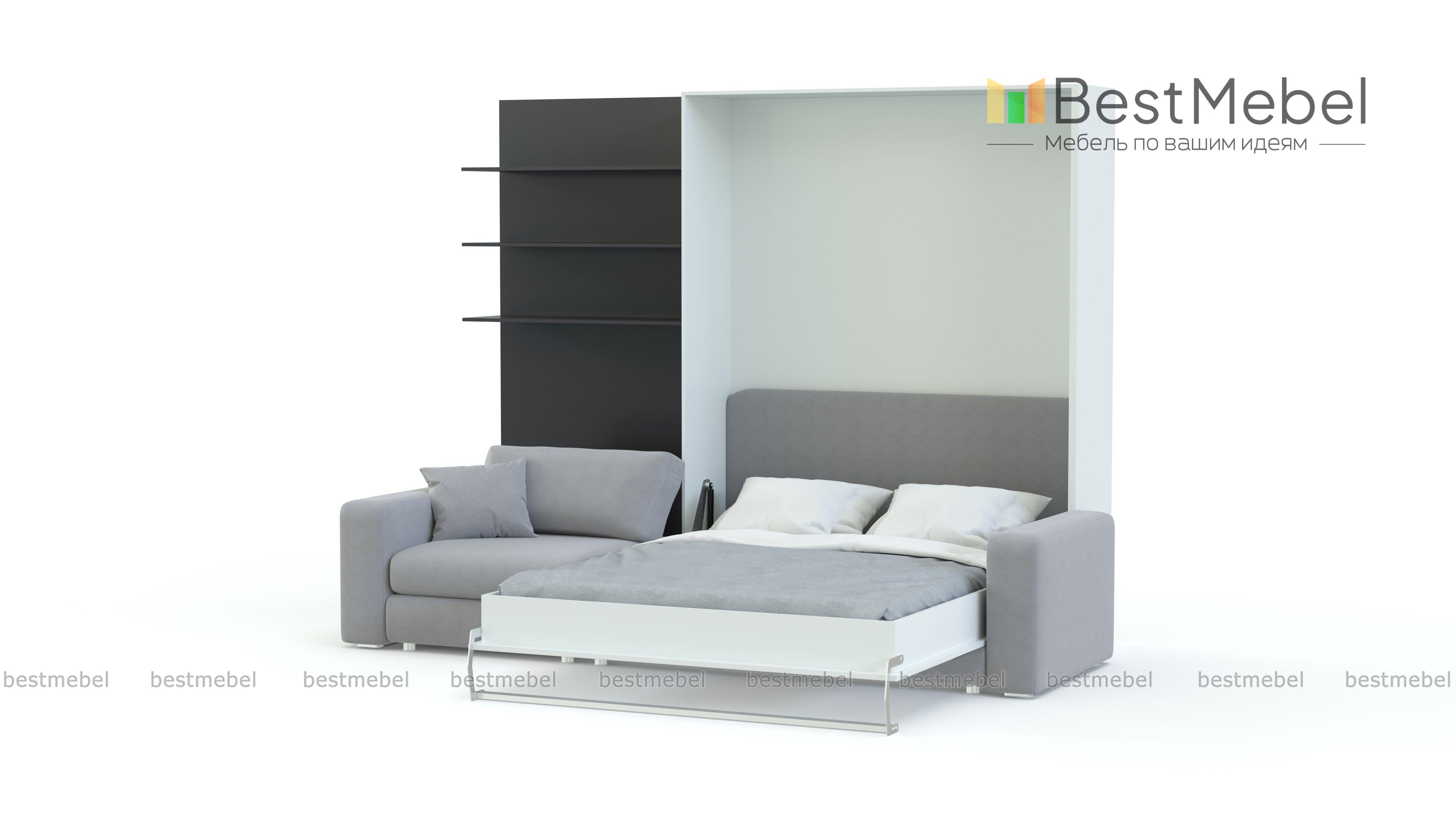 Шкаф-кровать Нью 6 BMS поможет оборудовать стильную и эргономичную зону отдыха. Эффектный минималистичный комплект станет практичным выбором для гостиных и студий, освобождая жилое пространство от лишней мебели. Разместиться всей семье или большой компании позволит широкий диван с формованными съемными подушками спинки, для книг и интерьерных украшений предусмотрены открытые полки, а спальное место легко получить с помощью вертикального откидного механизма. Купить шкаф-кровать Нью 6 BMS приглашаем в наш интернет-магазин.